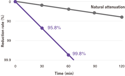 van Doremalen, N. et al. (2020) DOI:https://doi.org/10.1056/NEJMc2004973 - *3Disinfection time was calculated based on the data below, with central illuminance and intermittent operation (15 seconds ON/75 seconds OFF) in an enclosed space (25 m3). References are as follows.