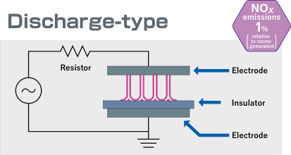 Clean172 UV Light Source for Ozone Generation uses light with a wavelength of 172 nm, which is not absorbed by nitrogen in the air, preventing the chemical reactions that result in generation of NOx. On the other hand, discharge-type systems decompose molecular nitrogen in the air, combining it with oxygen to produce NOx.