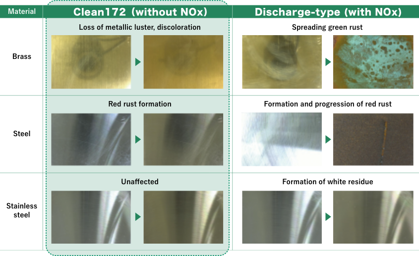Clean172 UV Light Source for Ozone Generation eliminates the risk of NOx-related corrosion. (Reaction of Nox with water vapor produces nitric acid that accelerates corrosion.)