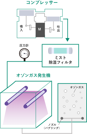 波長172nmをピークに持つエキシマランプを光源とすることで、放電式同等のオゾン量をNOxを発生させずに生成可能。波長172nmの紫外線とオゾン等の活性酸素により脱臭※1、除菌※1、TOC分解、化学物質※2分解など多様な用途に活用いただけます。
